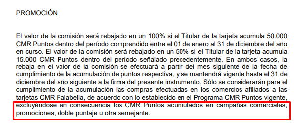 SiCabros, para el beneficio del descuento del costo de mantención de la CMR según la cantidad de puntos, ¿siempre existió esta condición que excluye puntos promocionales o de campañas?