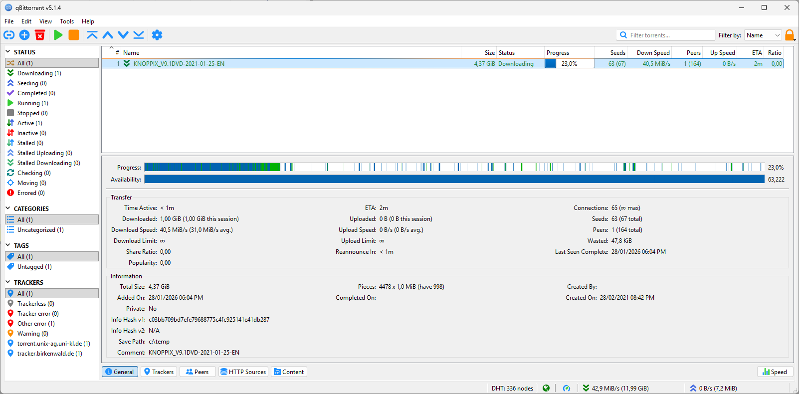 Bajé uno cualquiera de prueba, y llegó a 43MB/s