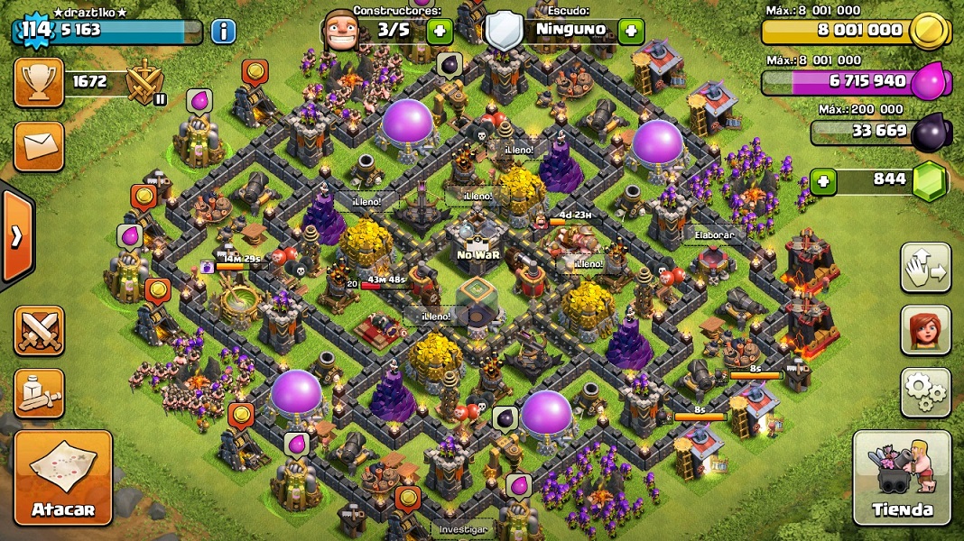 Aún corre esto?, yo soy ayunta 9 nivel 114, rey 22 y reina 20, todas las defensas, trampas y bombas al máximo, muros 9 y 10 y todas las tropas y hechizos al máximo para mi ayunta... menos la valkiria :zippy