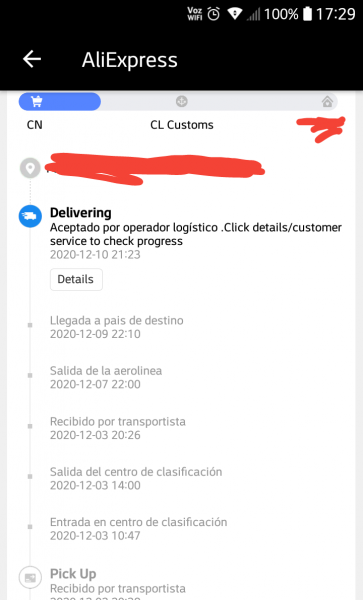 Ahora, nuevamente pedí por AliExpress con Standard Shipping, y desconozco si el vendedor envió mediante Sinotrans u otra compañia de envios. Si me pudieran ayudar, agradezco.