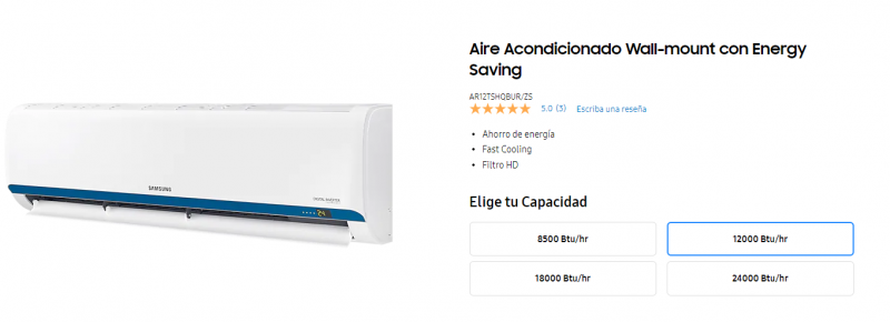 Aire Acondicionado Samsung INVERTER Energy Saving 12.000 BTU | Chile