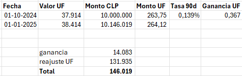 He revisado y tenemos DAP en pesos, los DAP-ETF, los en Dolares y UF, por lo que he revisado los en UF en general buscan darte mas seguridad pero la capacidad de rentar por sobre la inflacion es baja, mientras que en dolares, con la tendencia del dolar (que pienso con el hombre naranja tendera a fortalecerse) tambien se ve atractivo, pero que por otro lado estamos en ATH (por lo que seria una movida ultra FOMO), ademas viene con todo el hueveo con el SII y la enajenacion y todos esos monos pajeros