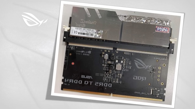 Según ASUS el prototipo mostrado requiere una placa madre Asus ROG Apex (US$500+ de momento), una Bios modificada para hacer que el controlador opere a velocidades DDR4 en un modulo DDR5 (Alder Lake tiene ambos modulos, cierto), y una memoria DDR4 validada.