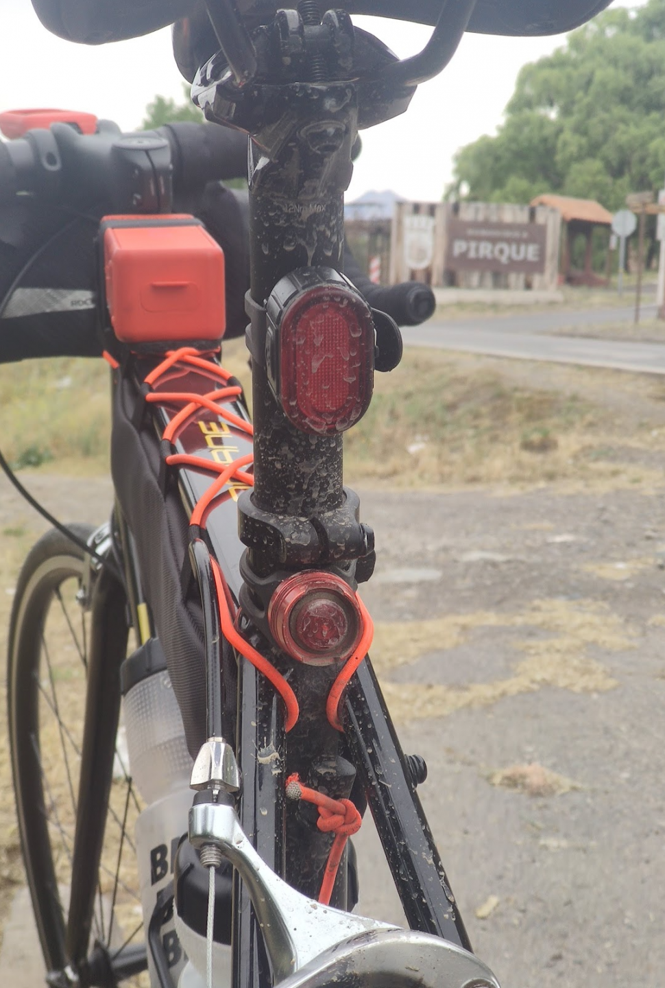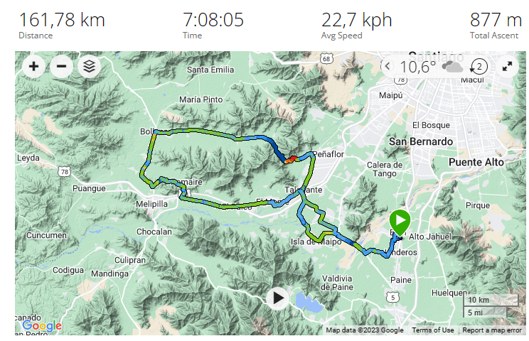Esa bici es una mtb , v-brake y ha llegado 4 veces este 2022 a la curva 40 , los neumaticos son racing ralph 26 x 2.3 atras de schwalbe ( muy rodadores ) y adelante 26 x 2.1 ignitor de maxxis , ambos inflados como a 50 psi . Me demore 7 horas desde casa -curva 40 , incluidas todas las paradas , caminatas y dormida en curva 15 . Y como 3 horas bajando , suelo demorar 2 horas de regreso , pero pare en el km 4 , las varas a comerme el saldo de la mochila y me relaje . Asi que el ida y vuelta fue en 10 horas . No hacia frio , pero las bajadas siempre me abrigo por la corriente de aire que a veces congela , con guantes largos , el gorro lana mas el del cortaviento . Esa bici no conoce lo vasquez .