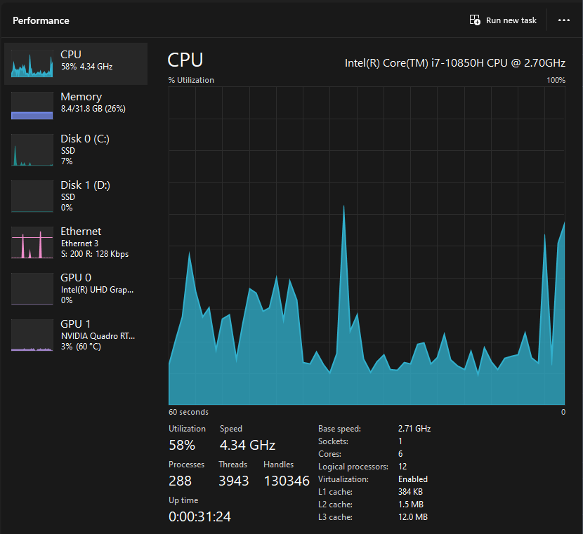 Sin embargo, he estado mirando el task manager y me he dado cuenta que la tarjeta de video integrada, se está puro tirando viento y no hace nada.