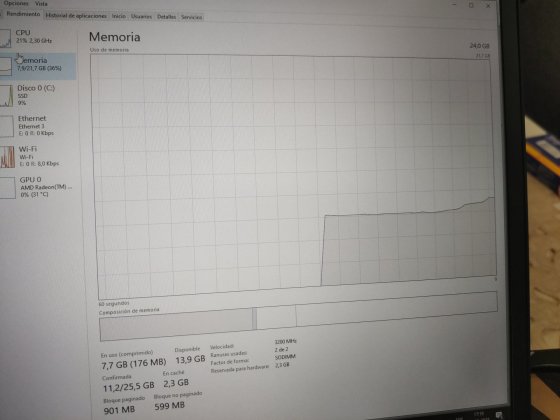 24gb DDR4 3200mhz, (8 integrados + 16GB Sodimm) dual channel.