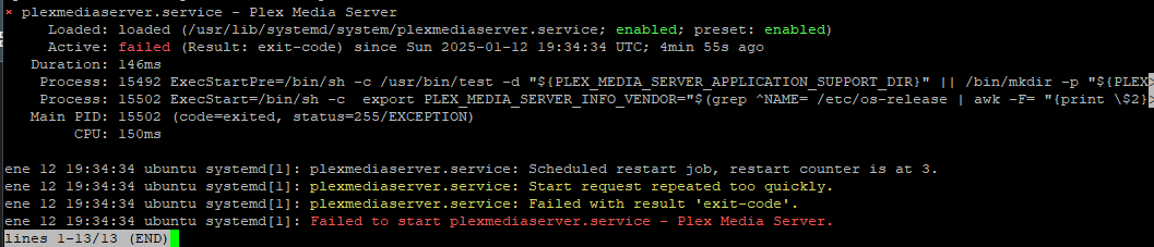 Después de eso, nunca más pude recuperar plex como servidor.