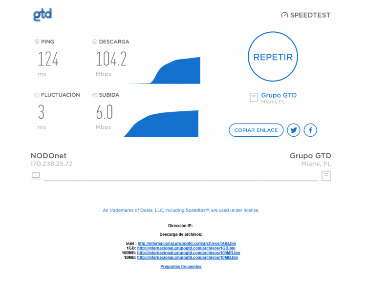 Ya que siempre uno intenta descubrir cuál es la mejor compañía disponible en su sector, les invito a publicar las velocidades que consiguen con servidores nacionales como internacionales.