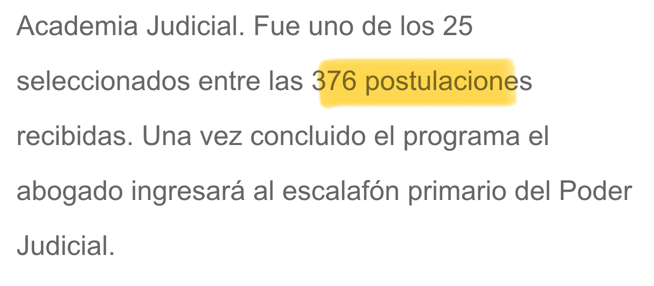 Adicionalmente tuvo que competir con 376 personas con estudios y contactos exepcionales.