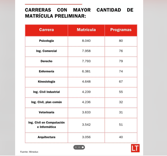 Y lo peor es que carreras que no sirven para nada: sicologia, kine. veterinaria arquitectura, ingeco.....pfff