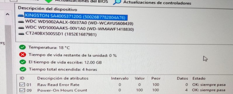 Hola de nuevo colegas, ya instale el win10 y después de 10 o 20 min de uso aprox. se pega el pc sin responder nada realize varios test y en uno que otro se cuelga antes de los 15 min, haciendo cualquier cosa, e dejando todas las piezas estandar por si estaban con oc pero aun asi se pega, las temp todas en 25°c o 30° pero el kingston esta en 18° incluyendo gpu en 35° idle, lo que me llamo la atencion es esto viendolo en aida es normal o error del programa su salud ??