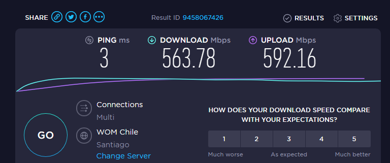 Los resultados (latencia/bajada/subida):