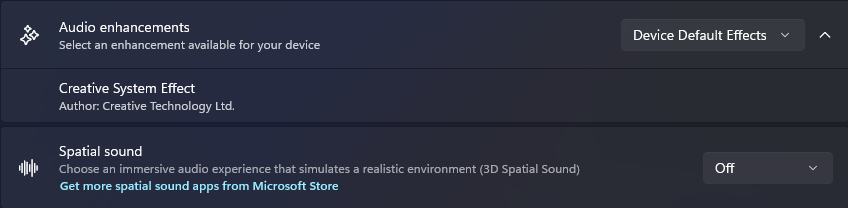 el famoso "Audio Enhancements" que se activa automáticamente cada vez que reinicio o prendo el equipo, suelo usar el PC con audífonos (vivo en un depto. no me gusta molestar con ruidos de motor, juego harto FH5, ni con disparos), y lo único que hace es arruinar el audio, entonces, cada vez que inicio windows tengo que ir al panel de control y desactivarlo para activar DTS en los fonos. es realmente una paja y me tiene muy cabreado y con una testiculosis horrible.